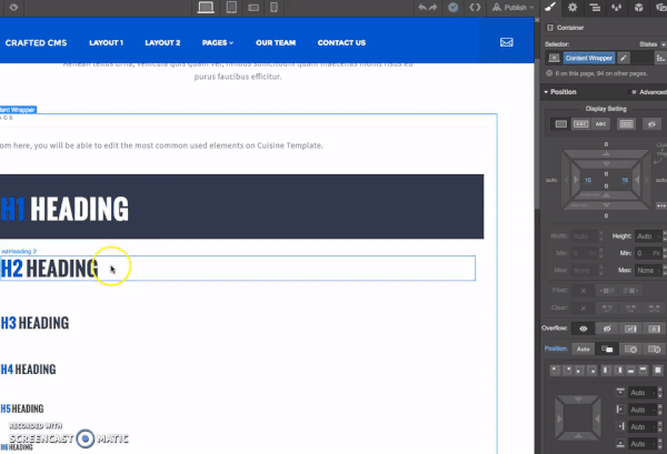 1. Select the element, for this example we will use the H1 Tag.